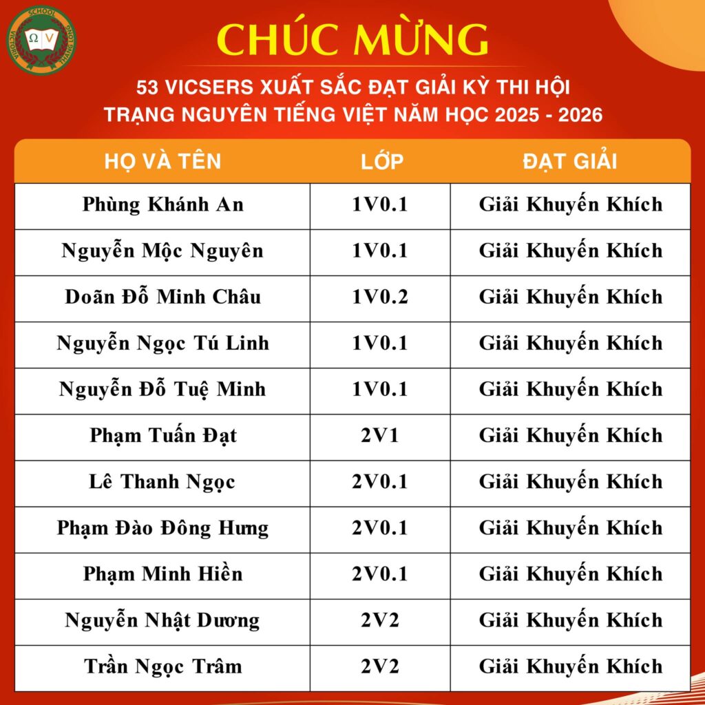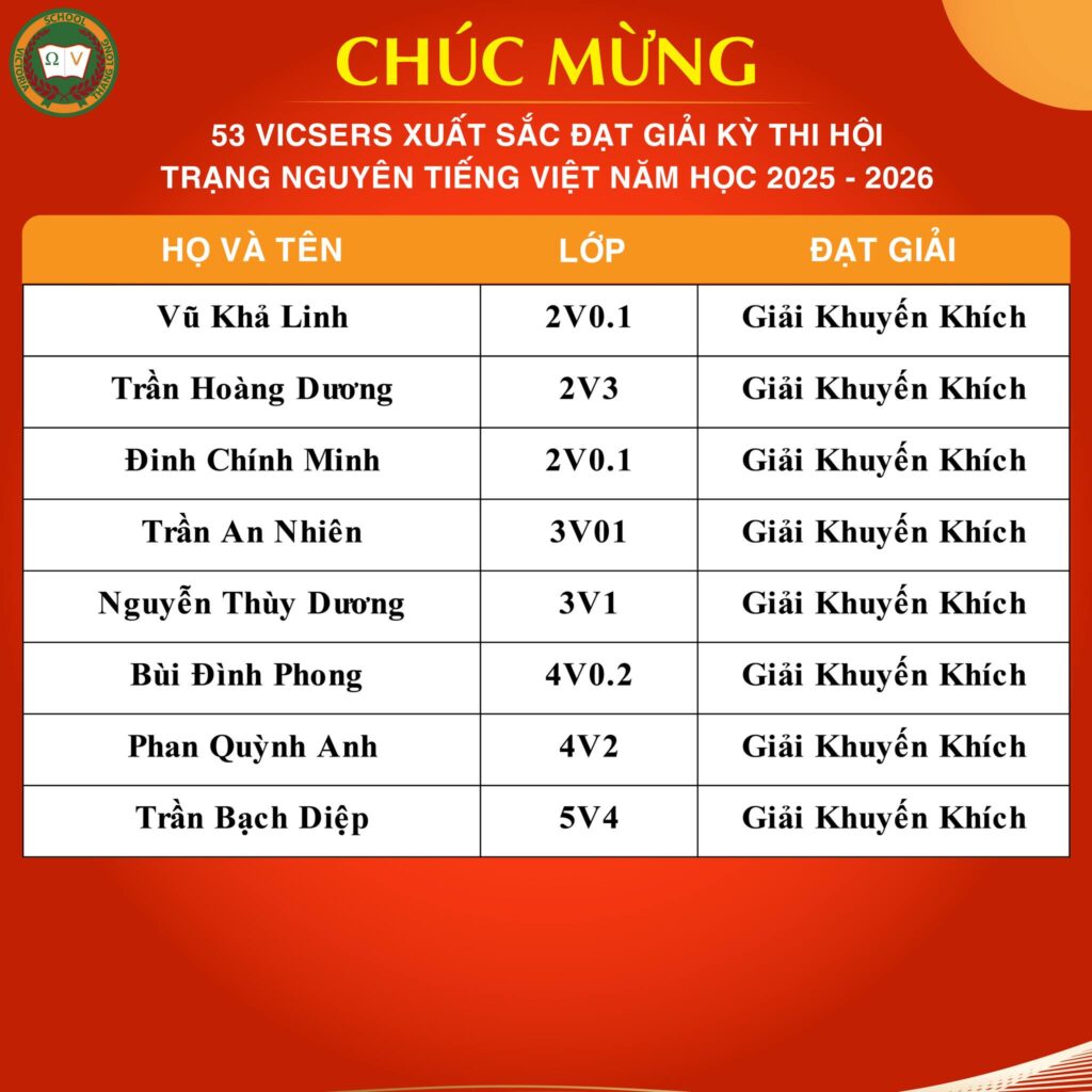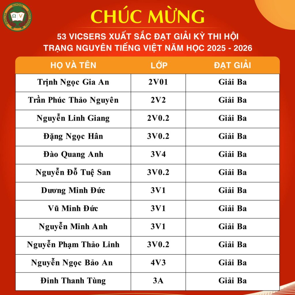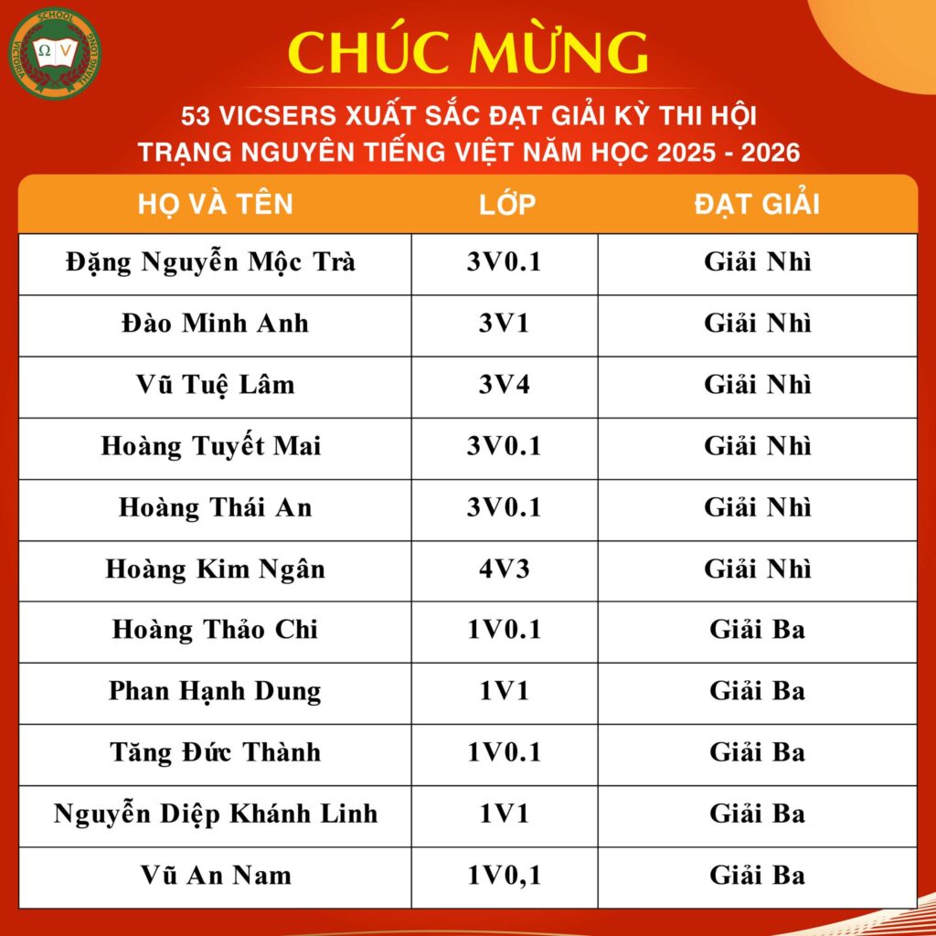 CHÚC MỪNG 53 VICSERS XUẤT SẮC ĐẠT GIẢI KÌ THI HỘI TRẠNG NGUYÊN TIẾNG VIỆT