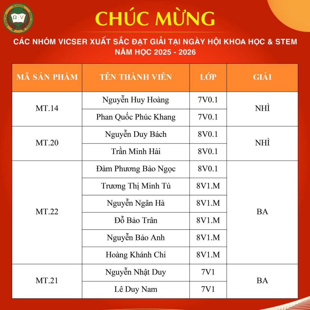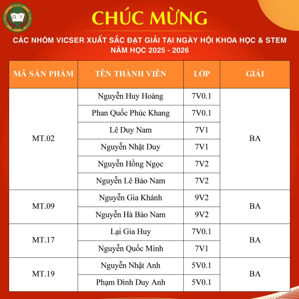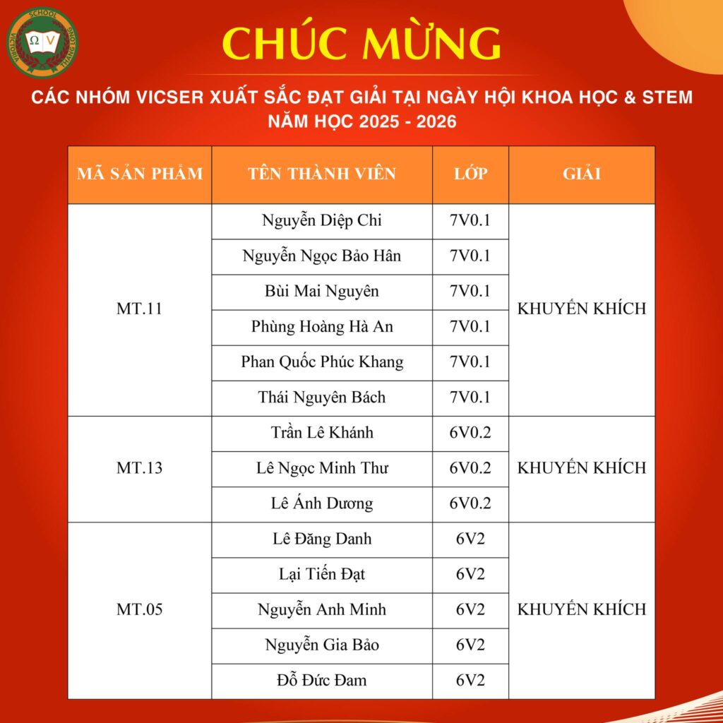 CHÚC MỪNG 07 GIÁO VIÊN VICTORIA THĂNG LONG ĐẠT SÁNG KIẾN CÓ PHẠM VI ẢNH HƯỞNG VÀ HIỆU QUẢ ÁP DỤNG CẤP HUYỆNKính chúc các thầy cô luôn mạnh khỏe, hạnh phúc để tiếp tục mang đến những sáng kiến hay và kiến thức bổ ích cho Vicsers, luôn vững vàng và thành công hơn nữa trên con đường giảng dạy và trong sự nghiệp trồng người.