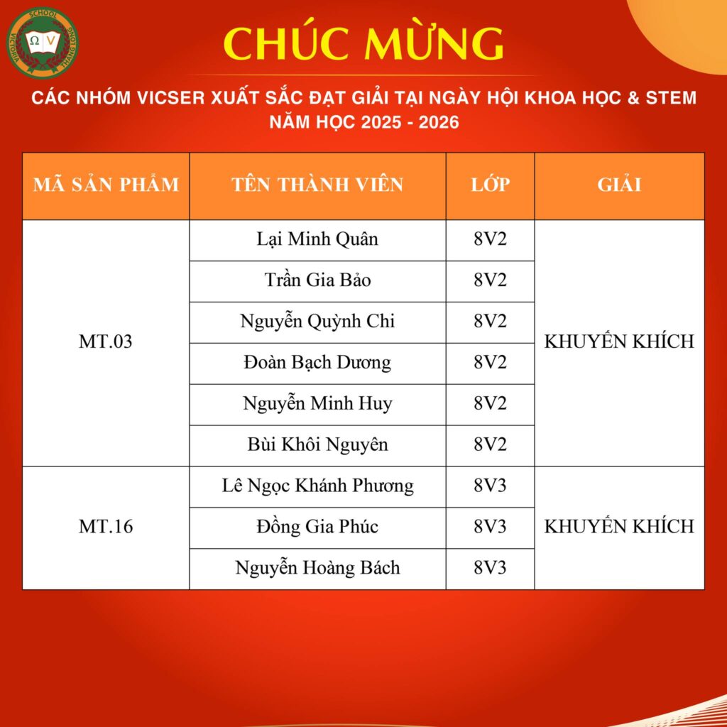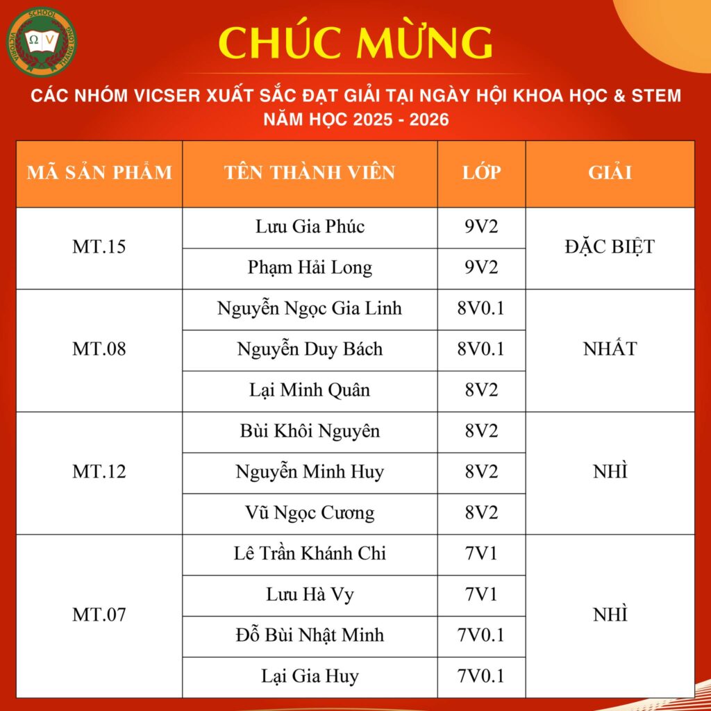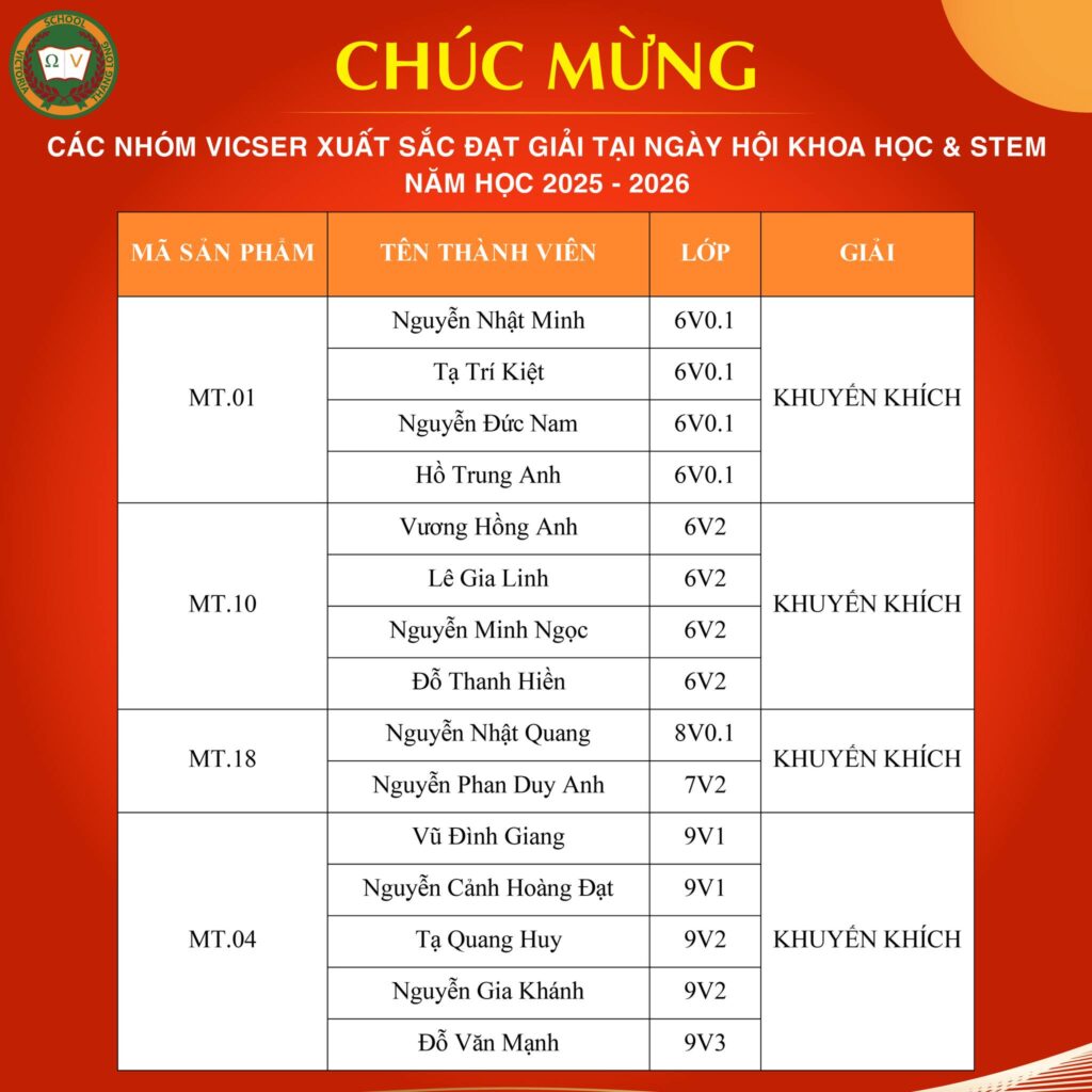 CHÚC MỪNG 07 GIÁO VIÊN VICTORIA THĂNG LONG ĐẠT SÁNG KIẾN CÓ PHẠM VI ẢNH HƯỞNG VÀ HIỆU QUẢ ÁP DỤNG CẤP HUYỆNKính chúc các thầy cô luôn mạnh khỏe, hạnh phúc để tiếp tục mang đến những sáng kiến hay và kiến thức bổ ích cho Vicsers, luôn vững vàng và thành công hơn nữa trên con đường giảng dạy và trong sự nghiệp trồng người.