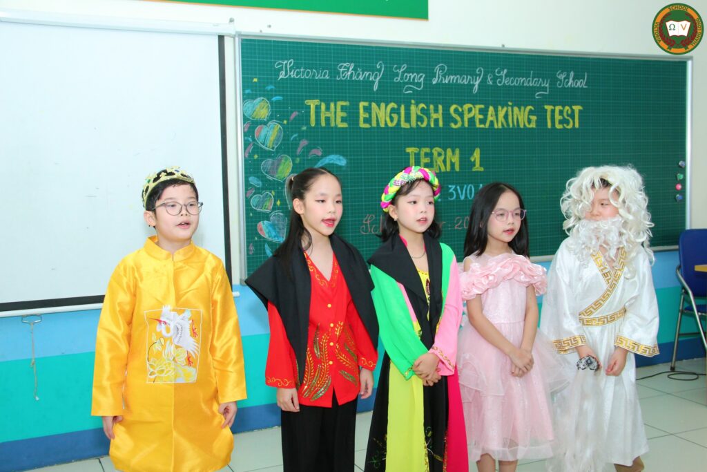 Bài thi Speaking cuối học kỳ 1 là hoạt động quan trọng nhằm đánh giá khả năng trình bày và giao tiếp tiếng Anh thông qua chủ đề tôn vinh vẻ đẹp và những giá trị cao quý của người phụ nữ Việt Nam và vẻ đẹp của các giá trị văn hóa. Ở mỗi khối lớp, nội dung báo cáo được thiết kế theo từng cấp độ giúp Vicsers thể hiện khả năng ngôn ngữ, phát triển kỹ năng thuyết trình, tranh biện.
