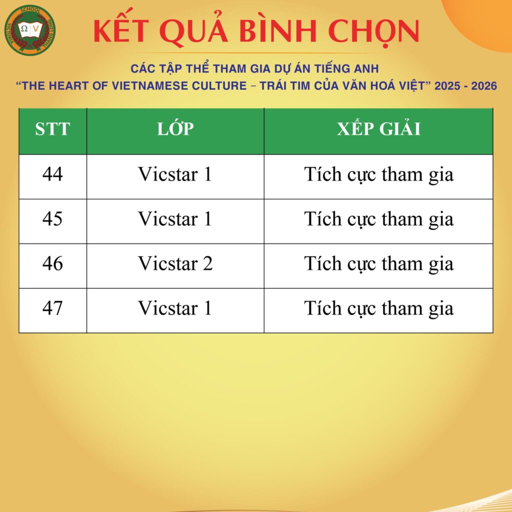 VICSERS TỰ TIN HOÀN THÀNH BÀI KIỂM TRA GIỮA HỌC KỲ INhững nỗ lực, quyết tâm và cố gắng chắc chắn sẽ giúp thầy và trò trường TH & THCS Victoria Thăng Long tiếp tục gặt hái thêm nhiều thành công. BGH Nhà trường cùng các thầy cô và cha mẹ chúc mừng các Vicsers thân yêu đã hoàn thành nhiệm vụ học tập và tin tưởng rằng Vicsers sẽ đạt kết quả tốt trong bài kiểm tra giữa học kì I vừa qua.